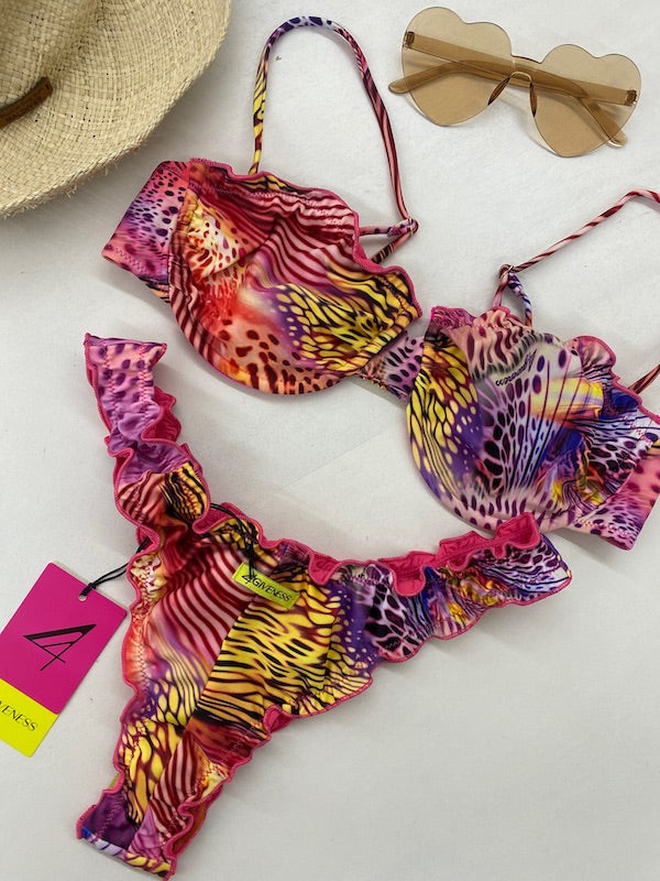 Bikini Donna 4Giveness Balconcino con Slip Americano Fantasia Pink Butterfly