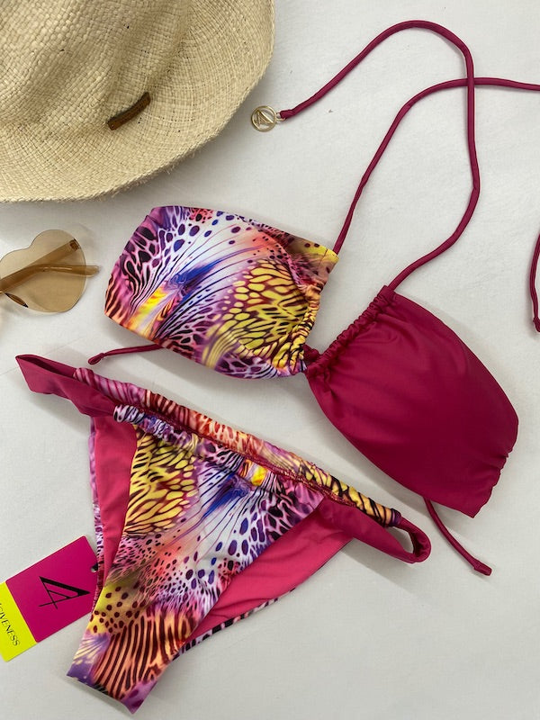 Bikini Donna 4Giveness Fascia incrocio con Slip Fisso Fantasia Pink Butterfly BK5854