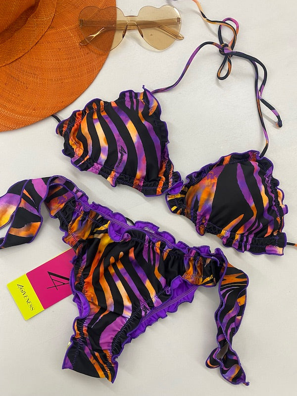 Bikini Donna 4Giveness Triangolo Sbambolato con Slip Annodato Fantasia Hypnotic Zebra