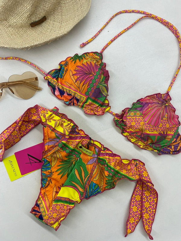 Bikini Donna 4Giveness Triangolo Sbambolato con Slip Annodato Fantasia Pop Foulard