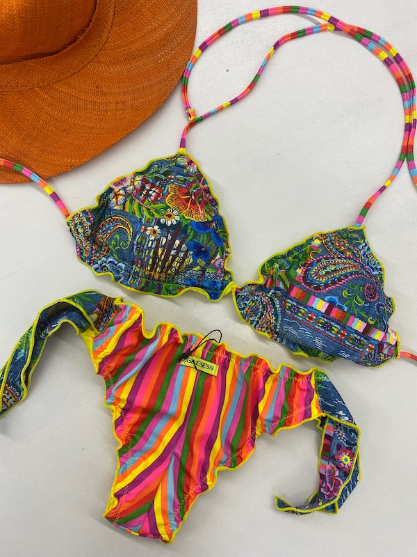 Bikini Donna 4Giveness Triangolo Sbambolato con Slip Annodato Fantasia Riga Mexican