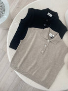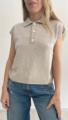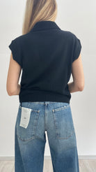 Gilet Donna in maglia con scollo a polo con 3 bottoni, profili a coste.