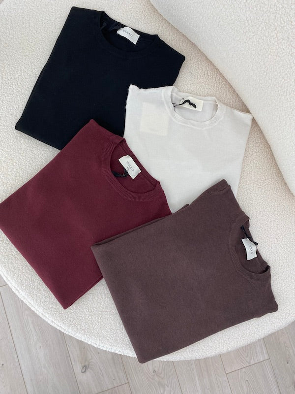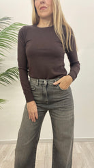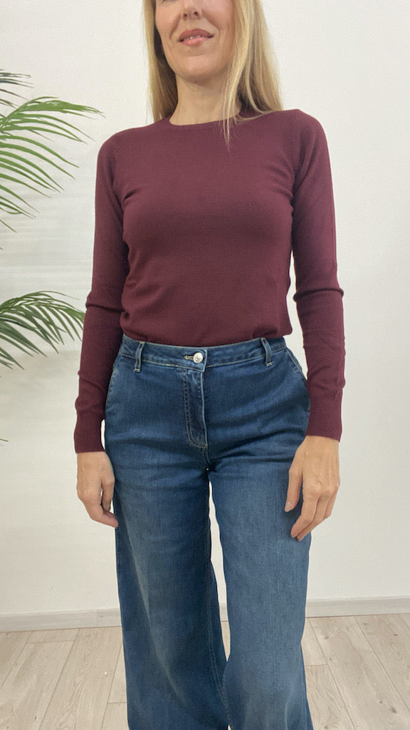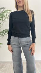 Girocollo in Maglia Vicolo, maniche lunghe e finiture in maglia a costine.