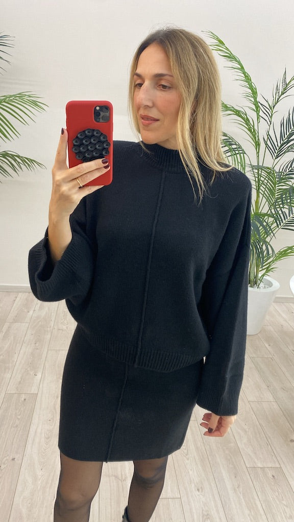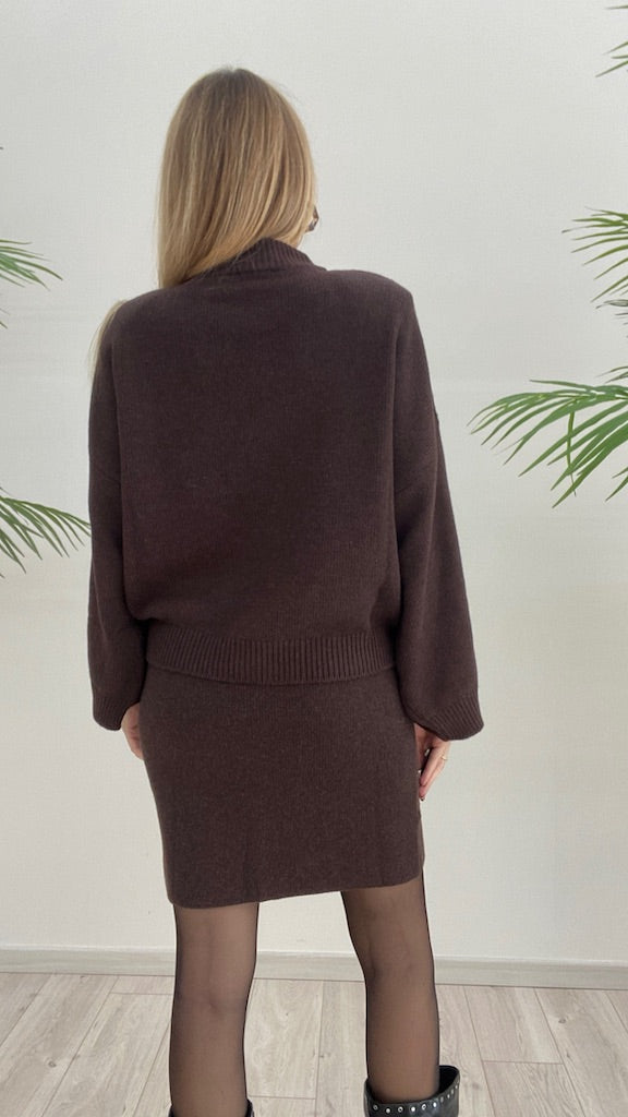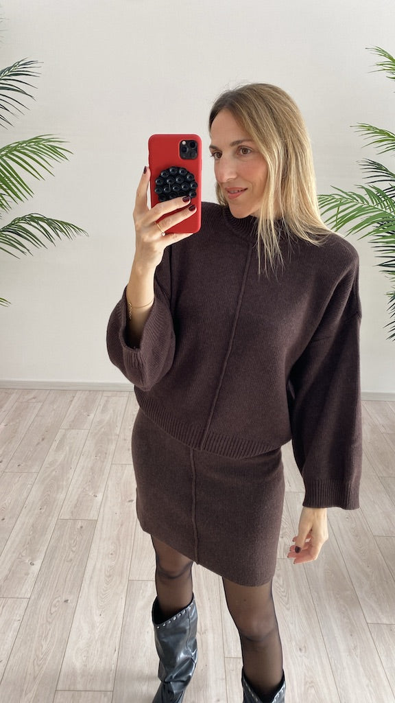 Maglia lupetto Vicolo con nervatura centrale dotata di spalline e profili a coste.