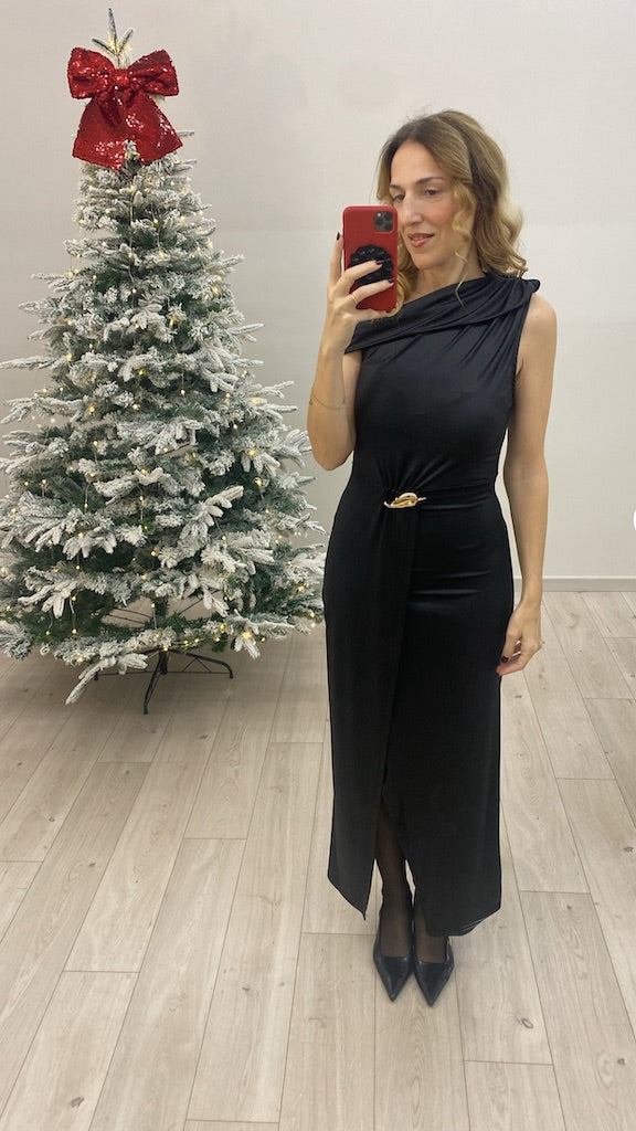 Abito Lungo Nero Asimmetrico Vicolo