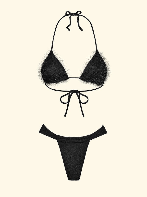 Bikini Donna F**K Triangolo con Slip Brasiliano Fisso Nero SW0720-BK