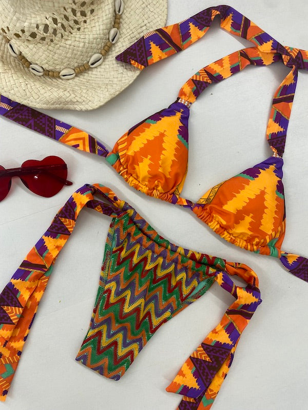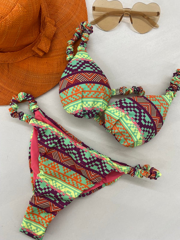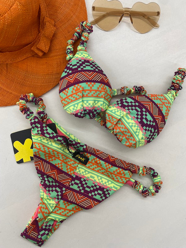 Bikini Donna F**K Triangolo con Slip Regolabile Multicolor SW0294-MC