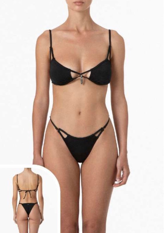Bikini Donna Pin Up Stars Triangolo e Perizoma Micro Borchie Nero