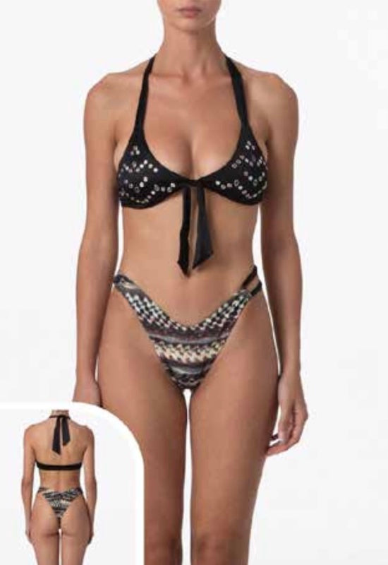 Bikini Donna F**K Top con Slip Americano fisso Nero SW0752-BK