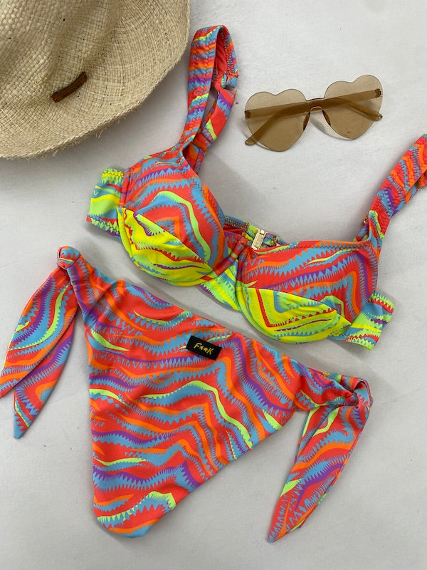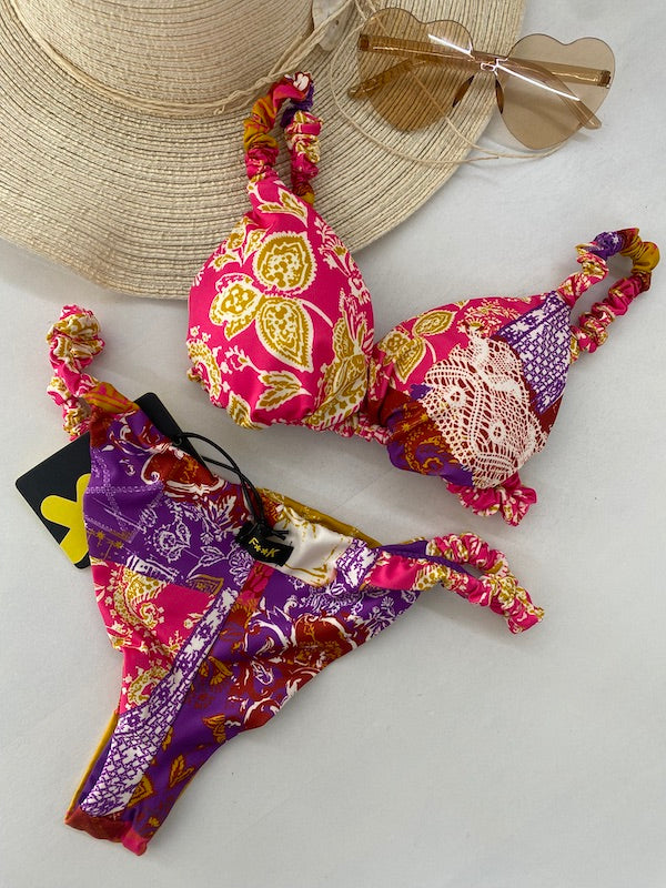 Bikini Donna F**K Reggiseno con Ferretto e Slip Regolabile Fantasia SW2303-X35