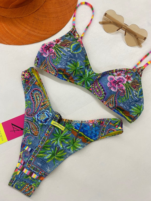Bikini Donna 4Giveness Top con Slip a V Fantasia Denim Mexican BK5648