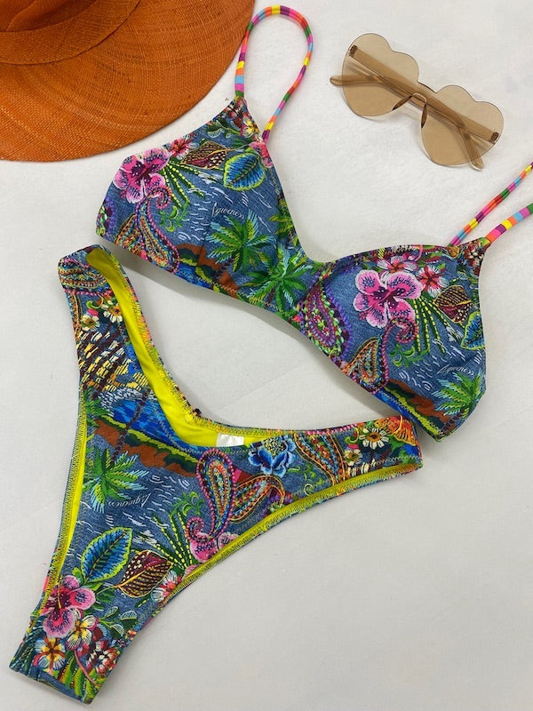 Bikini Donna 4Giveness Top con Slip a V Fantasia Denim Mexican