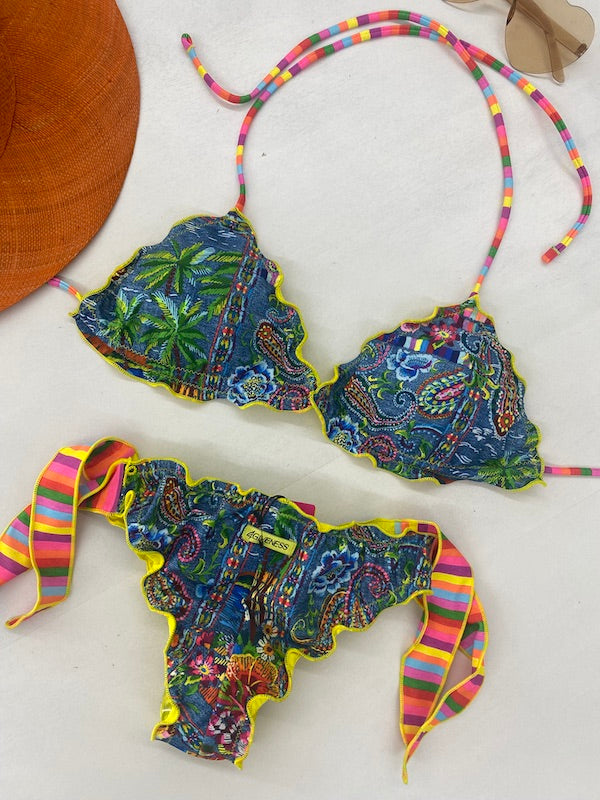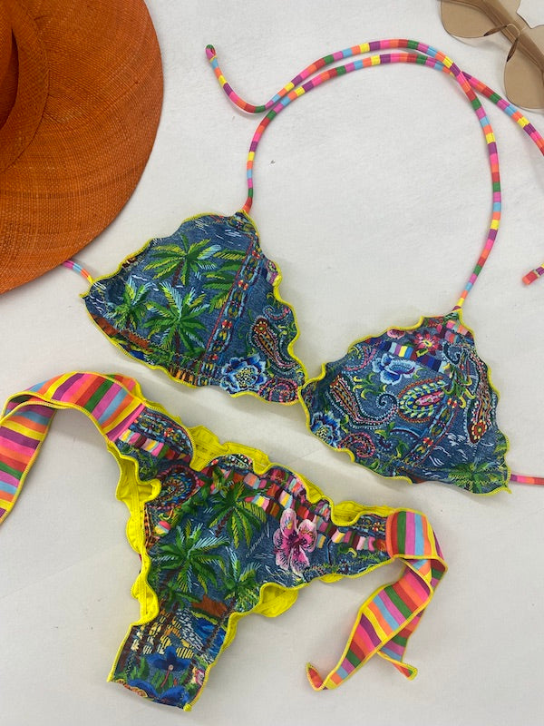 Bikini Donna 4Giveness Triangolo Sbambolato con Slip Annodato Fantasia Denim Mexican