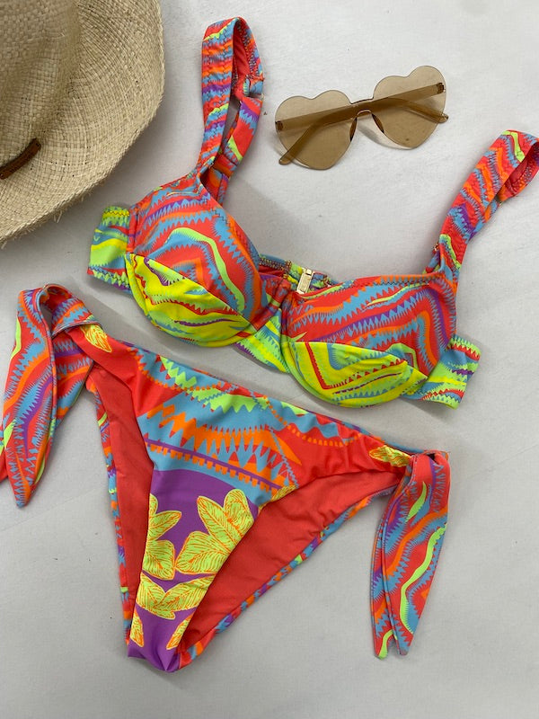 Bikini Donna F**K Reggiseno con Ferretto e Slip Regolabile Fantasia