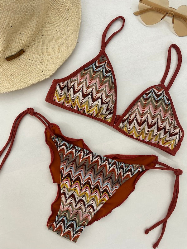 Bikini Donna F**K Top Fisso con Slip Regolabile Ruggine SW0421-RU