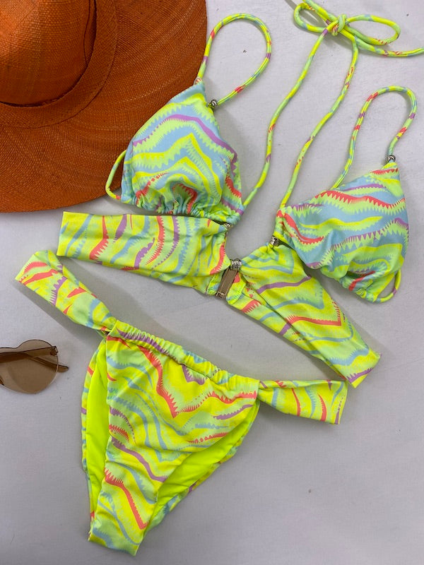 Bikini Donna Effek Triangolo con Slip Brasiliano Fisso Fantasia