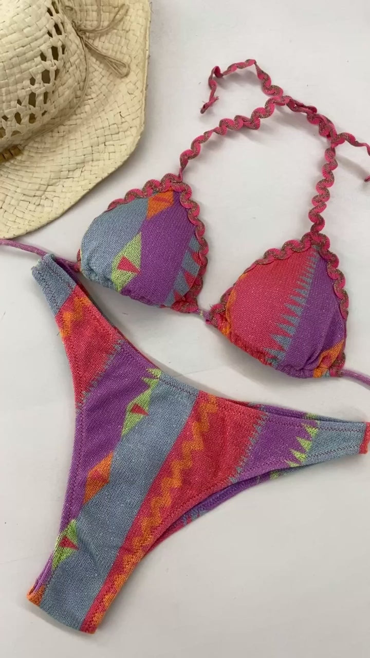 Bikini Donna Effek Triangolo con Slip Americano Fisso in fantasia