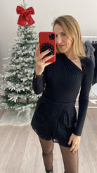 Body Nero con Scollo Asimmetrico Vicolo