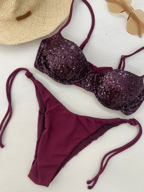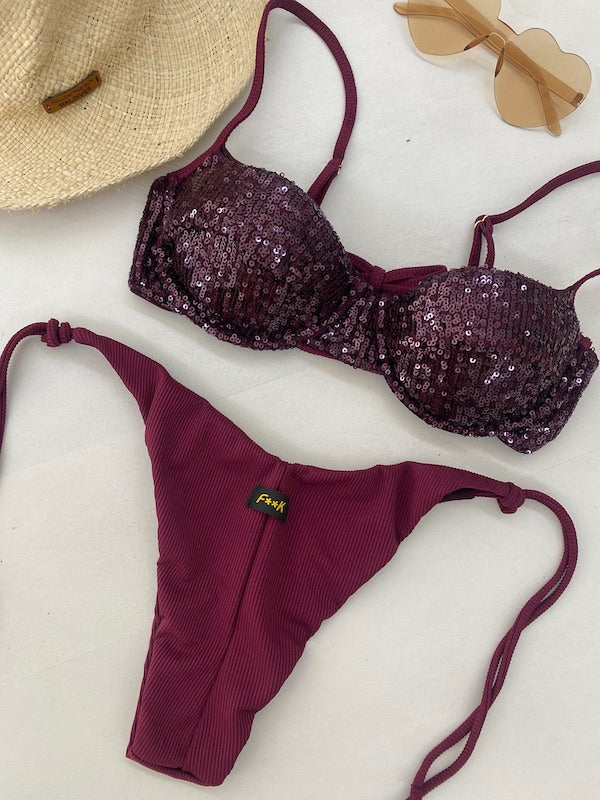 Bikini Donna F**K Reggiseno con Ferretto e Americano Regolabile Bordeaux