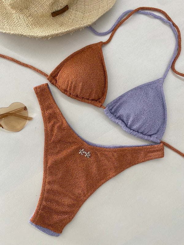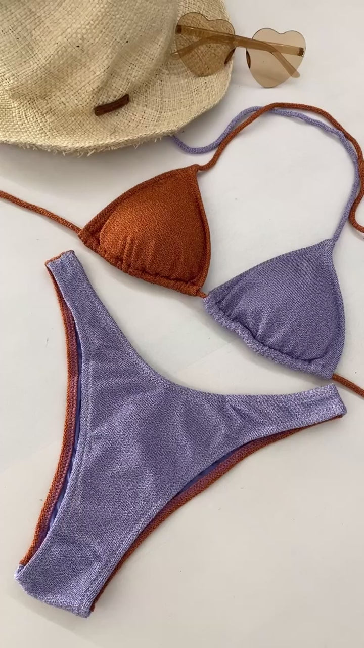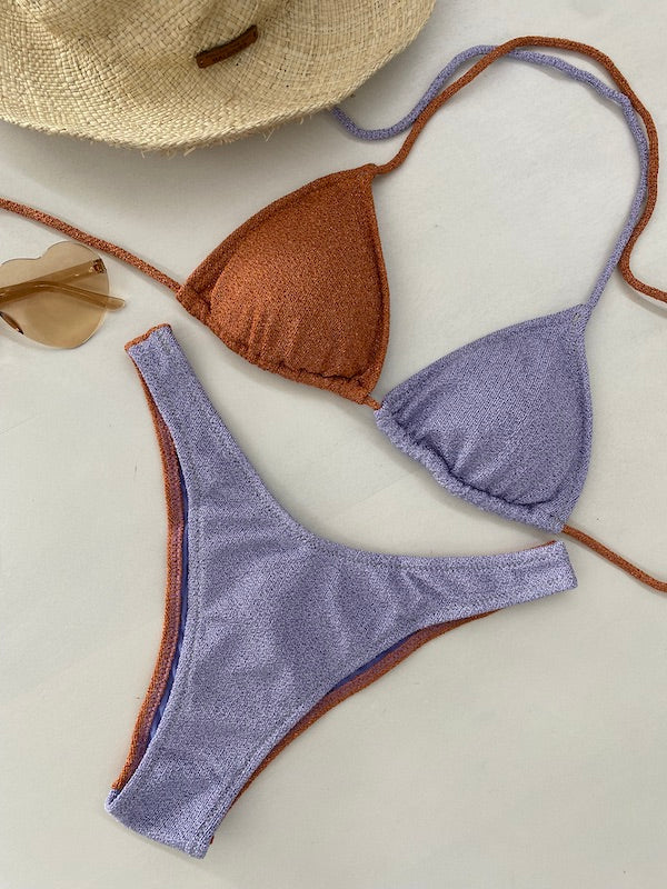 Bikini Donna F**K Triangolo con Slip Americano Fisso LIlla SW1110-LC