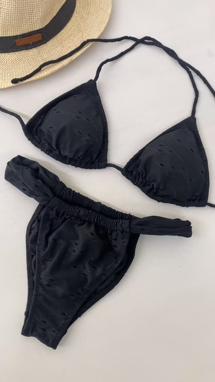 Bikini Donna F**K Triangolo con Slip Brasiliano Fisso Nero