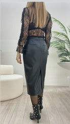 Gonna midi in ecopelle Vicolo a vita alta. Tasche frontali applicate. Chiusura posteriore con cerniera e spacco sul fondo.