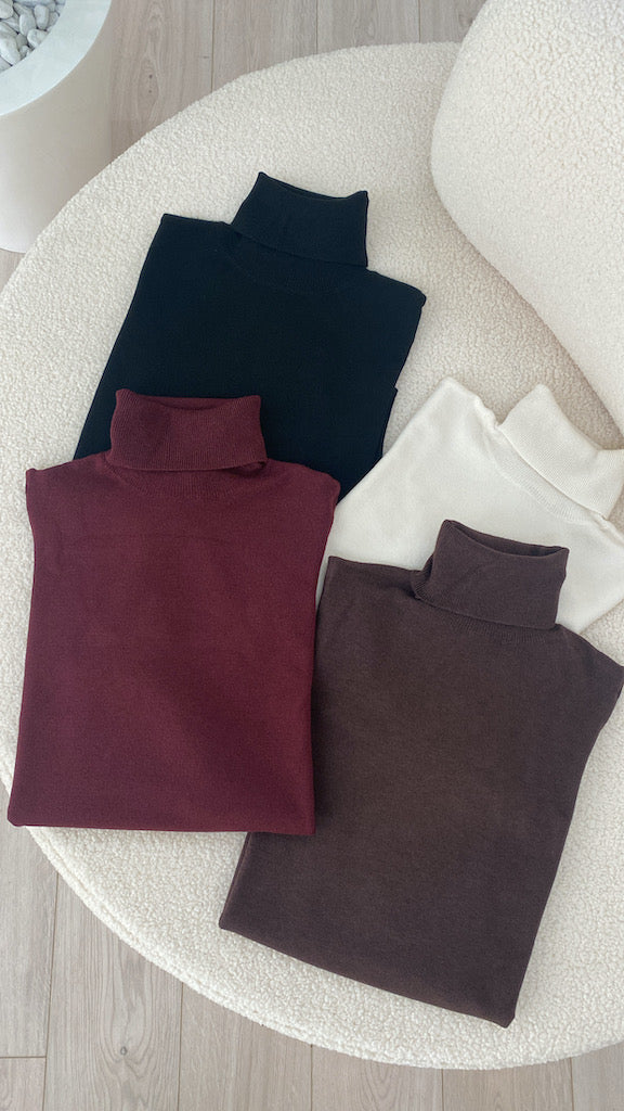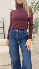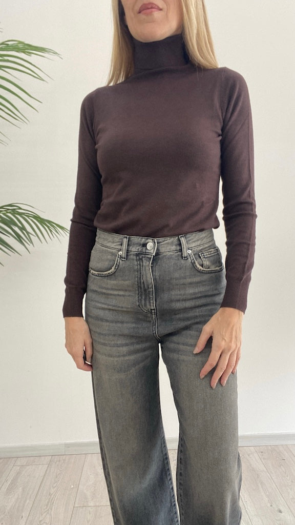 Maglia Dolcevita Vicolo in viscosa vestibilità aderente, maniche lunghe e profili a costine.