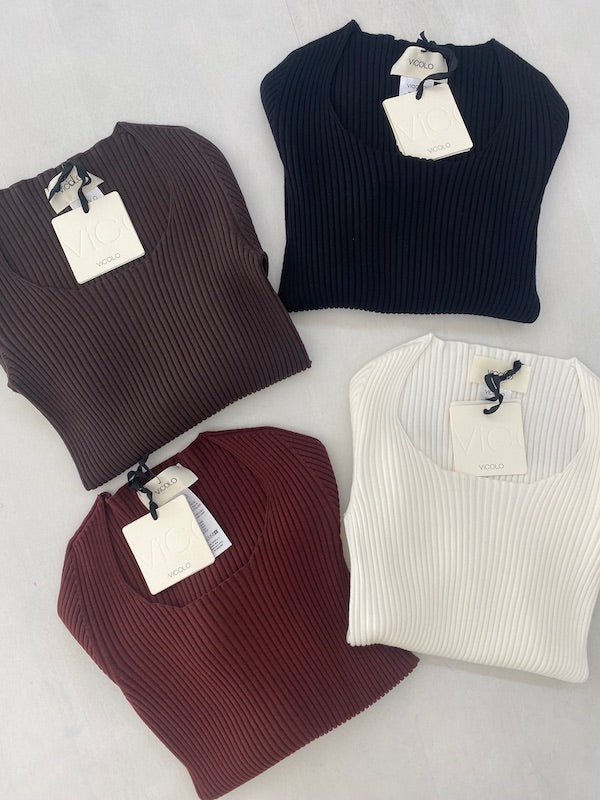 Maglia Viscosa a Costine Scollo Quadrato Vicolo