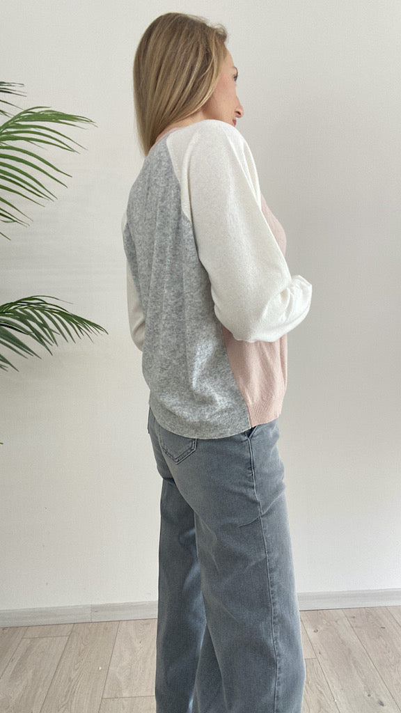 Girocollo in maglia Vicolo Color Block fronte retro e maniche.