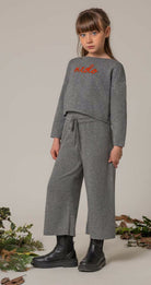 Pantalone bambina in maglia Vicolo, coulisse in vita. Composizione 52% viscosa, 29% poliestere e 20% poliammide.Colore Grigio .Taglia disponibile 10 ANNI ( ALTEZZA CM 140 - BUSTO 65,5 - FIANCHI 59 - BACINO 70 ).