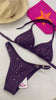 Bikini Donna Pin Up Stars Triangolo Pioggia di Strass Slip Small Viola