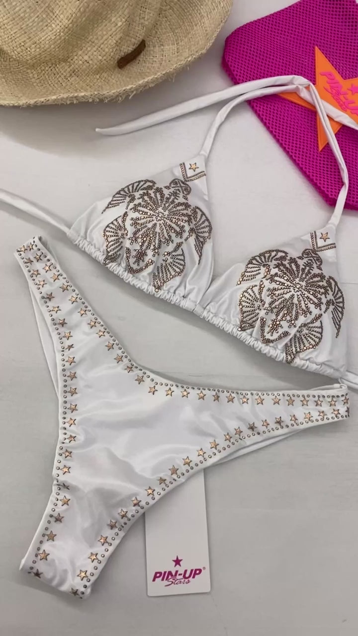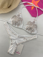 Bikini Pin Up Stars Triangolo Metallizzato Tribal Sea e Slip Brasiliano Bianco