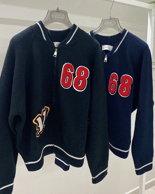 Cardigan Vicolo maniche lunghe collo. Chiusura con zip centrale. Dettaglio colletto, polsini e fondo in costa. Patch frontali applicati.