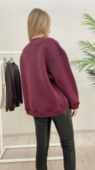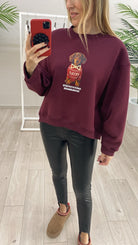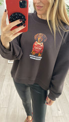 Felpa oversized Donna Vicolo girocollo maniche lunghe con arriccio sui gomiti. Dettaglio bassotto natalizio stampato.