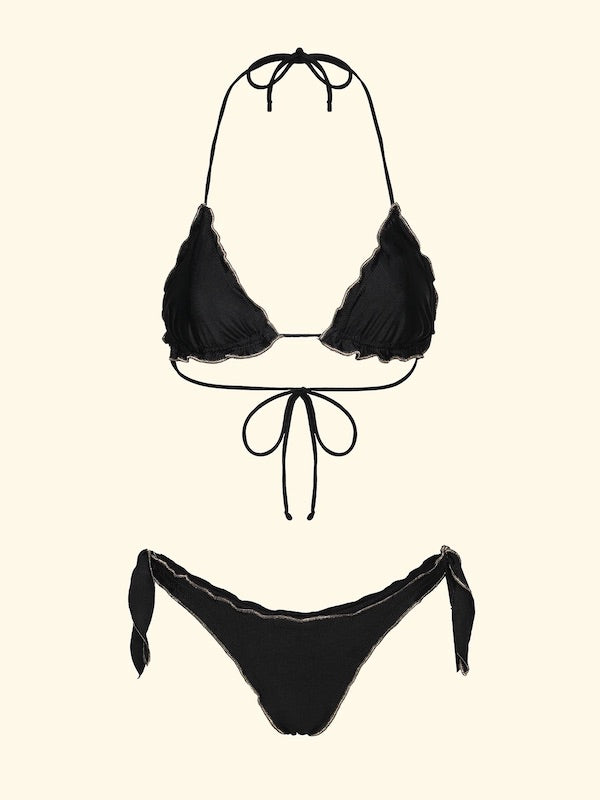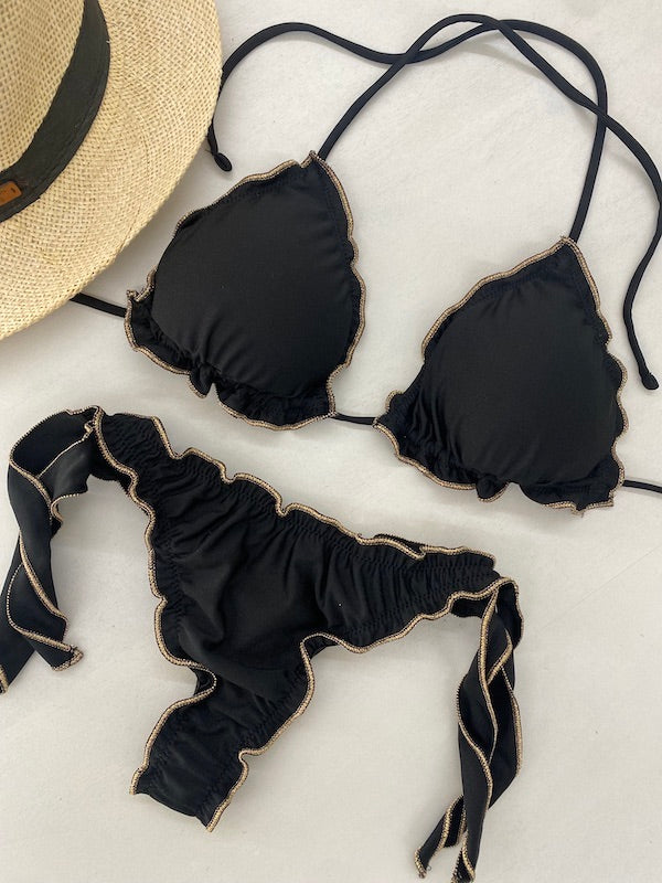 Women's F**K Triangle Bikini with Adjustable Thong, Black with Gold trim