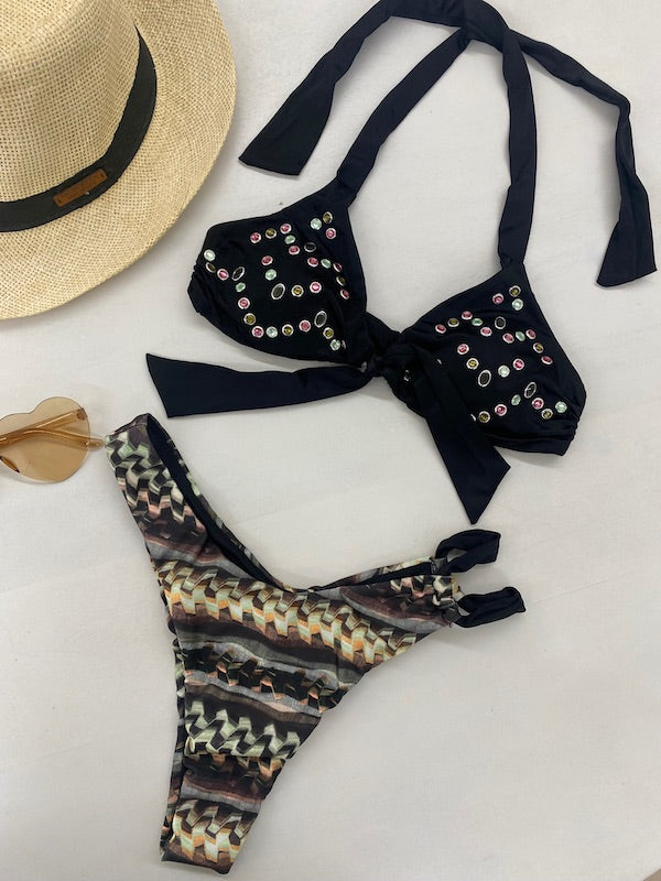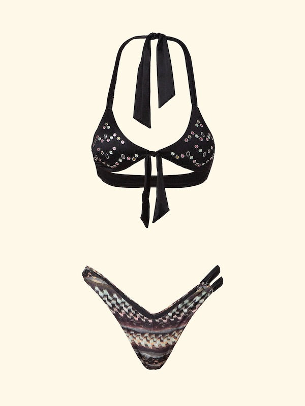Dettagli: Capo dotato di imbottitura interna estraibile, borchie su coppe e nodo regolabile centro seno