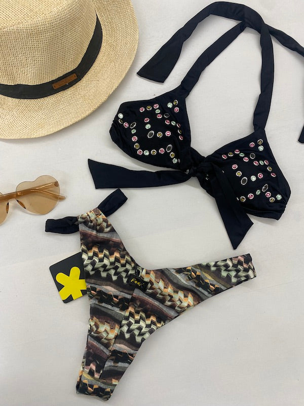 Bikini Donna F**K Top Regolabile e Slip Americano Fisso Fantasia