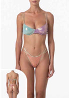 Bikini Donna F**K Reggiseno con Ferretto e Slip Fisso Multicolore