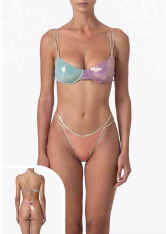 Bikini Donna F**K Reggiseno con Ferretto e Slip Fisso Multicolor