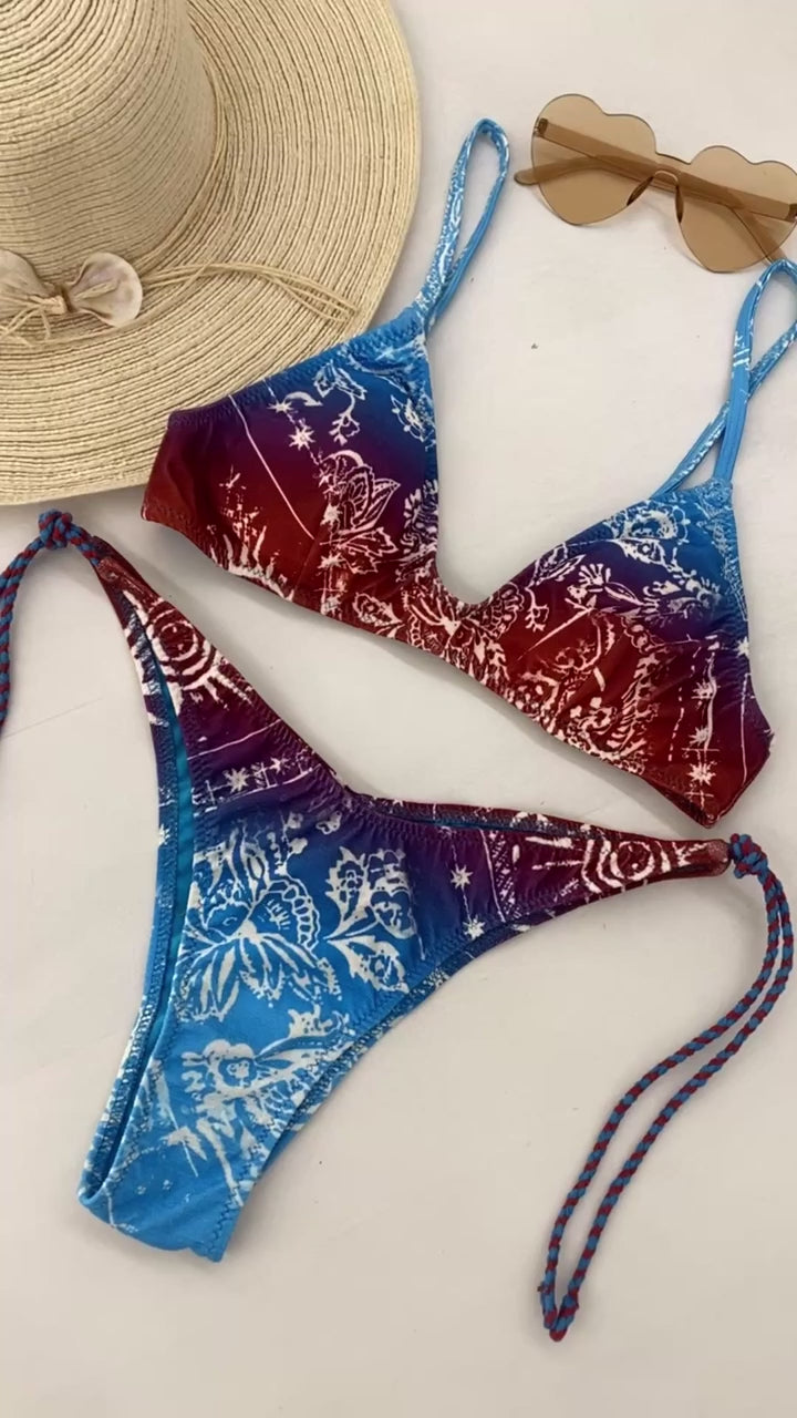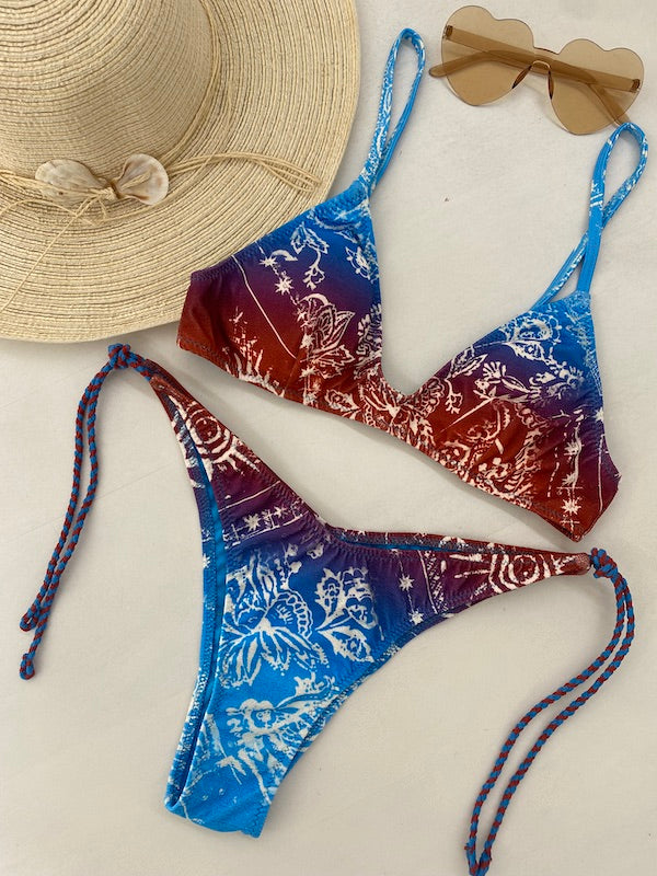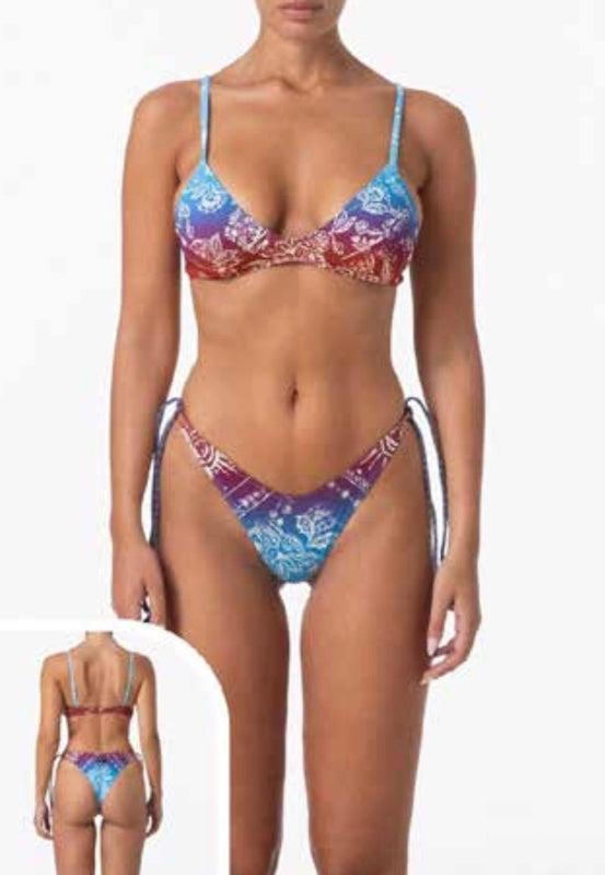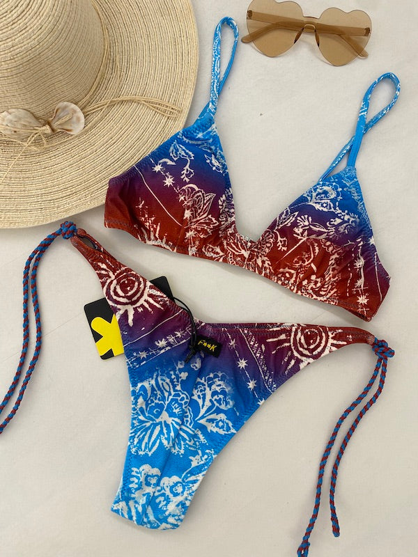 Bikini Donna F**K Top Fisso con Slip Americano Regolabile Fantasia