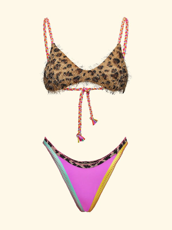 Bikini Donna F**K Top Regolabile fantasia maculata con Slip Fisso Tinta unita con profili bicolor.
