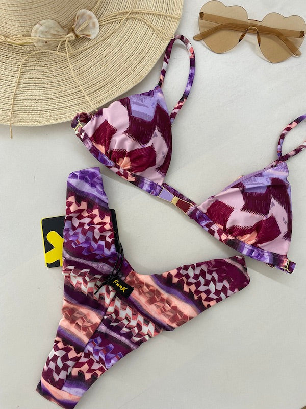 Bikini Donna F**K Triangolo con Slip Regolabile Fantasia
