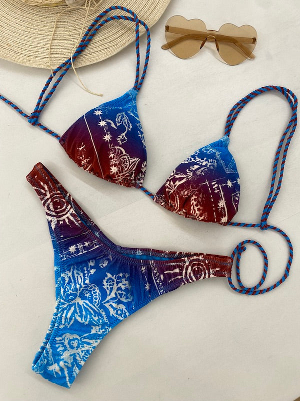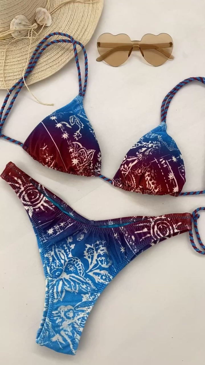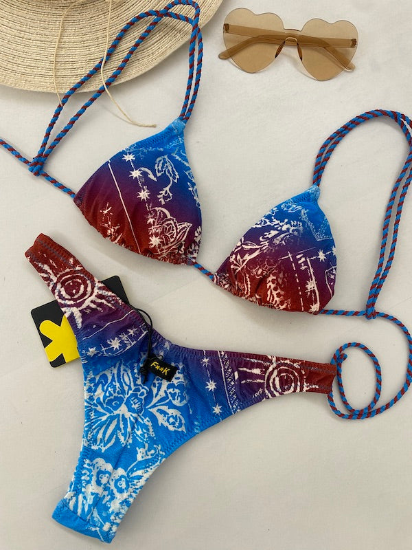 Bikini Donna Effek Triangolo con Slip Americano Fisso Fantasia