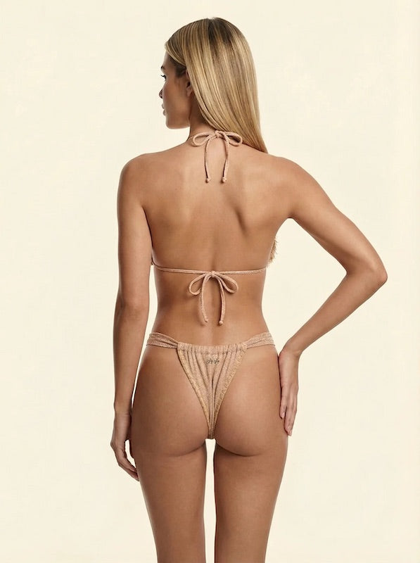 Bikini Donna F**K Triangolo con Slip Brasiliano Fisso Oro