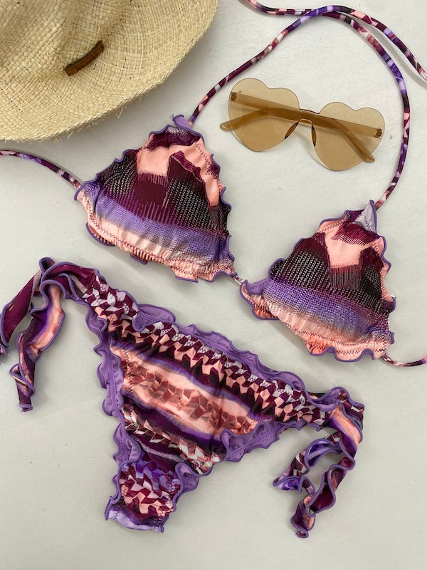Bikini Donna Effek Triangolo con Slip Regolabile Fantasia