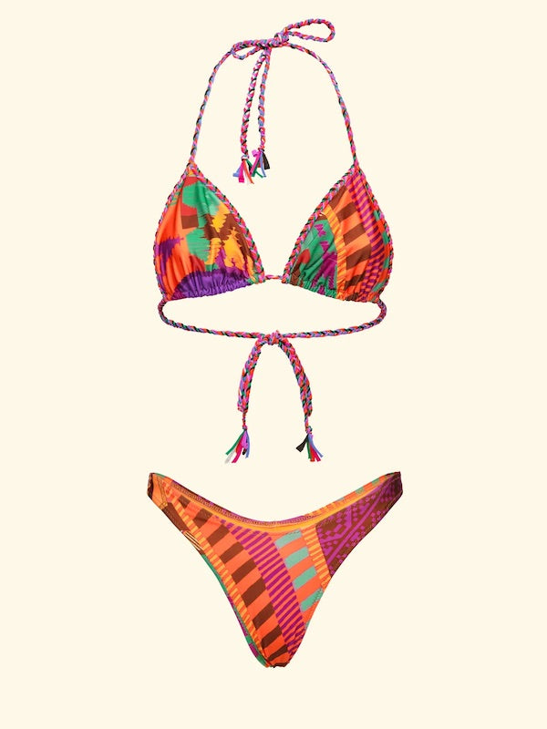 Bikini Effek Triangolo Alto con Americano Fisso Fantasia