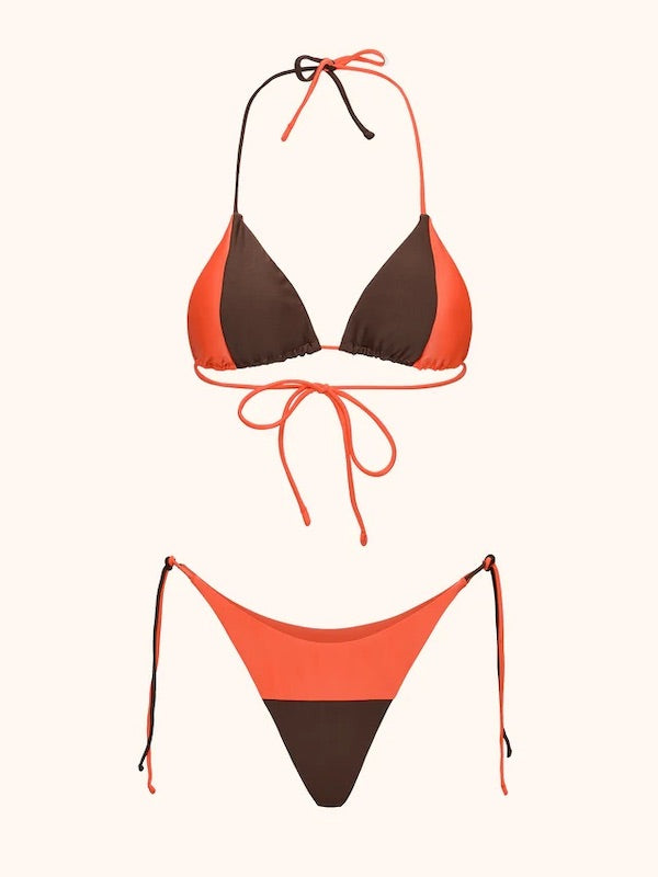Bikini Donna Me Fui Triangolo con Slip Americano Regolabile Corallo