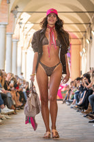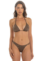 Bikini Pin Up Stars Triangolo Pioggia di Strass Slip Small Marrone